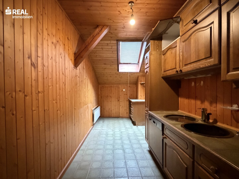 Adaptierungen der Wohnung erfolgten in den 1990er-Jahren. Die Dachgeschosslage bringt charakteristische Dachschrägen mit sich, die eine gemütliche Wohnatmosphäre schaffen. In einzelnen Bereichen kommt es dadurch zu reduzierter Raumhöhe.