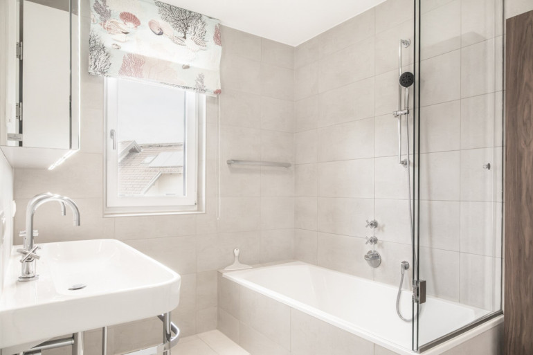 Ergänzend bietet sich eine unmittelbar darunter gelegene, ebenfalls zweigeschossige Wohnung mit 104 m2 (Gästeappartement, Büro, Sauna- und Fitnessraum sowie Waschküche) zum Kauf an.
