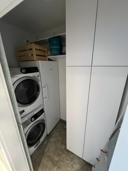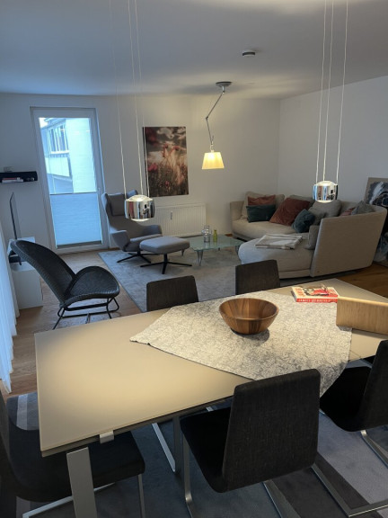 Die offene Wohnküche, ausgestattet mit einer hochwertigen Einbauküche, lädt zum Kochen und Verweilen ein. Genießen Sie Ihre Mahlzeiten in der hellen Wohnküche oder auf der Loggia, während Sie den atemberaubenden Blick über die Stadt genießen. Die große Loggia ist der ideale Ort, um entspannte Stunden im Freien zu verbringen und die Seele baumeln zu lassen.