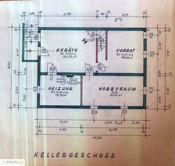 hier befinden sich 4 Kellerräume, wobei einer als Heizungskeller genutzt wird. Hier befindet sich auch der Gaskessel für Heizung und Warmwasser sowie der Warmwasserspeicher.