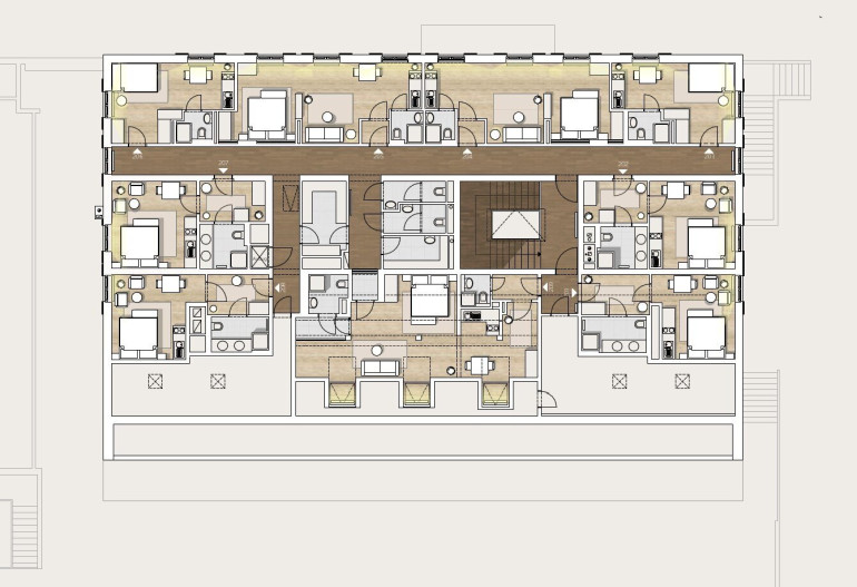 Die Einheiten verteilen sich auf mehrere Geschosse und umfassen unterschiedliche Wohnungstypen – von kompakten Kleinwohnungen bis hin zu großzügigeren Einheiten. Die Wohnungsgrößen variieren grob zwischen ca. 20 m² und ca. 65 m², wodurch eine breite Nutzungspalette (z. B. Eigennutzung als Zweitwohnsitz, Vermietung für touristische Zwecke, Kombinationen) möglich ist.