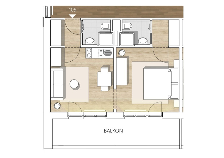 Die Apartments verfügen über Wohnflächen von ca. 20 m² bis ca. 65 m² und unterscheiden sich je nach Einheit in Lage, Ausrichtung und Grundriss. Dadurch ergibt sich eine vielseitige Auswahl – von kompakten Rückzugsorten bis hin zu großzügigeren Wohnungen für längere Aufenthalte.
