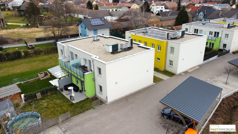 Die erst im Jahr 2017/2018 errichtete Liegenschaft befindet sich in Harmannsdorf - Rückersdorf auf der Laaer Straße 17 und ist technisch als auch optisch in einem sehr gepflegten und neuwertigen Zustand.