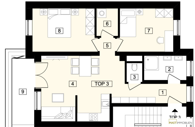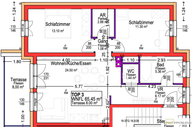 - 65 m² Wohnfläche + 8 m² Terrasse/Balkon
