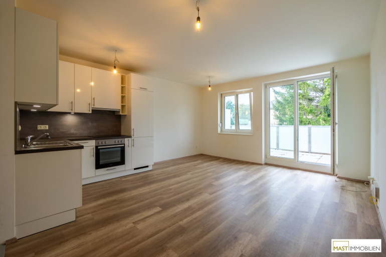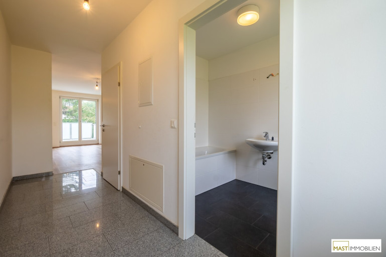 Nach Eintritt in die Wohnung gelangen Sie in ein großzügiges Vorzimmer / Eingangsbereich das ich Ihnen ausreichend Platz für Ihre Garderobe bietet. Das Badezimmer das mit einer Badewanne, WM-Anschluss & Waschbecken ausgestattet ist, verfügt über Fenster. Das separate WC natürlich inkl. Handwaschbecken. Die Wohnküche wurde mit einer hochwertigen Küche der Marke EWE ausgestattet. Das Elternschlafzimmer bietet eine Fläche von ca. 13 m² und bietet Platz für ein Doppelbett & Kleiderschrank. Das Kinderzimmer mit einer Fläche von ca. 11,30 m² ist natürlich ebenfalls separat begehbar. Der großzügig weitläufige Balkon/Terrasse im Ausmaß von ca. 8 m² ist westseitig ausgerichtet und bietet einen traumhaften Fernblick ins Grüne.