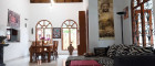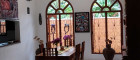 Lichtdurchflutetes Wohnen: Das Haupthaus besticht durch hohe Decken mit edlen Holzkonstruktionen, die für ein angenehmes Raumklima sorgen. Große Rundbogenfenster mit kunstvollen Gittern lassen viel Licht herein und bieten gleichzeitig Sicherheit.