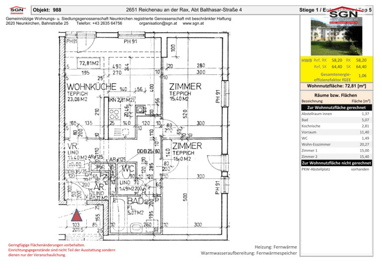 | Heizwärmebedarf: | 64,40 kWh/m²a |