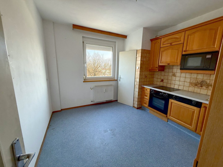 Die Wohnung verfügt über zwei Schlafzimmer, ein helles Wohnzimmer mit Loggia und schönem Weitblick, eine separate, großzügige Küche sowie ein neu saniertes Badezimmer. Dank der großen Fensterflächen sind alle Räume lichtdurchflutet und freundlich.