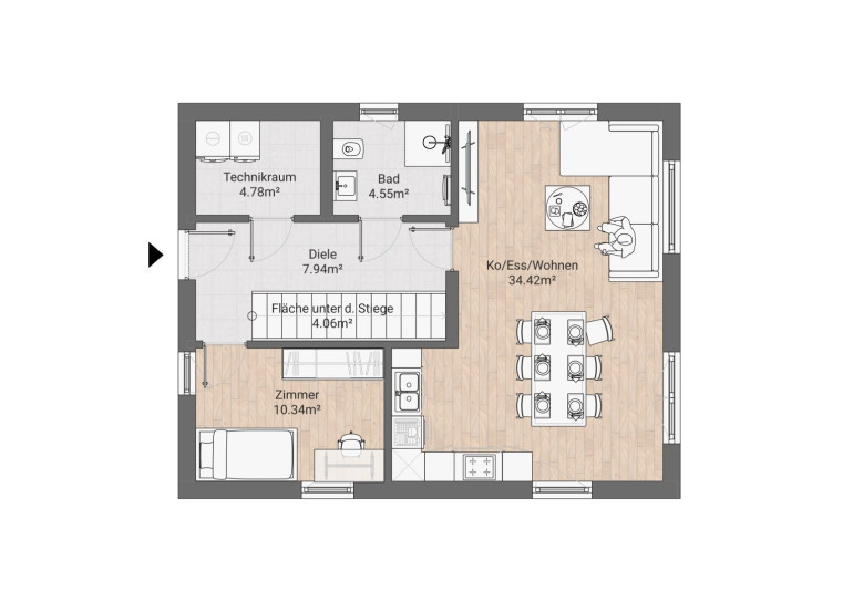 - Technikraum: 4,78 m²
