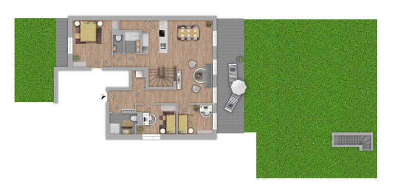 Über 200 m² Außenflächen (Terrasse + Eigengarten) – südlich ausgerichtet