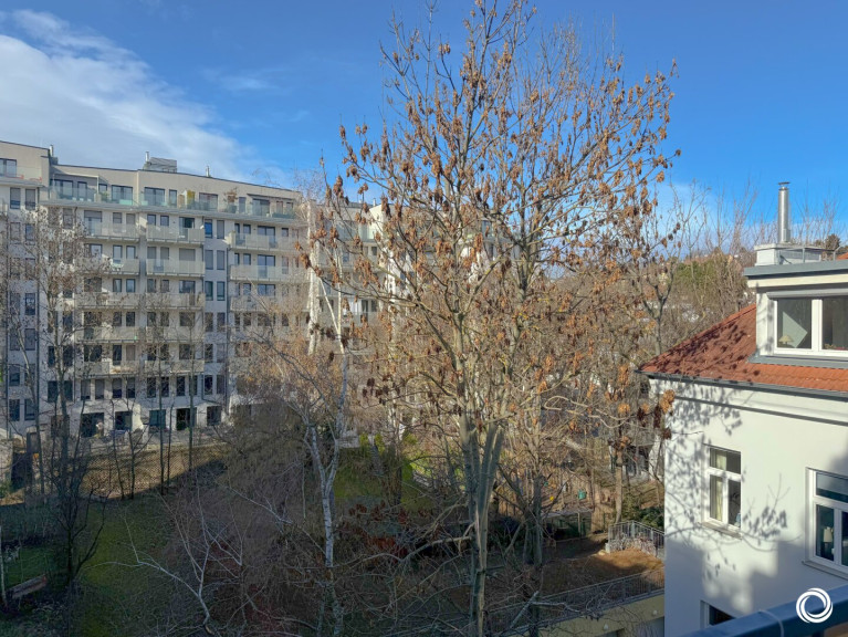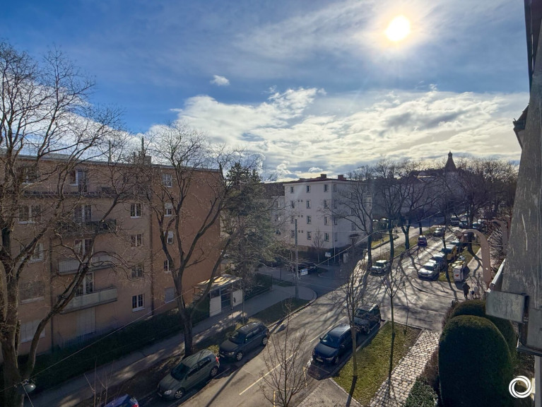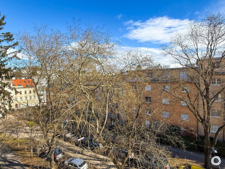 Ein besonderes Highlight ist der ruhige Balkon mit Grünblick in nordwestlicher Ausrichtung – ideal für ein gemütliches Frühstück im Freien oder ein Glas Wein in der Abendstimmung. Die Wohnung bietet zwei großzügige Zimmer, einen separaten Home-Office-Bereich, eine voll ausgestattete Küche, Bad mit Wanne und Dusche sowie ein separates WC mit Fenster.