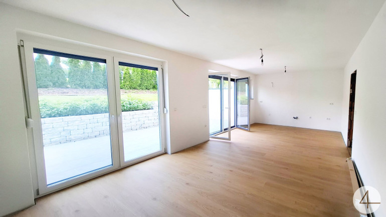 ein großzügiger und offener Wohnbereich mit Zugang auf die weitläufige Terrasse