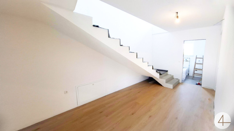 Im Erdgeschoss betreten Sie einen einladenden Flur, der Ihnen Zugang zu verschiedenen Räumlichkeiten bietet. Rechter Hand finden Sie den praktischen Technikraum, der für Ordnung und Funktionalität sorgt. Links befindet sich das Badezimmer (hell und modern gestaltet, verfügt über ein WC und eine Ebenerdige Dusche) das Büro oder Gästezimmer & komplettiert wird das Erdgeschoss durch das Herzstück dieser Doppelhaushälfte, den offene Wohnbereich welcher durch große Fensterfronten lichtdurchflutet wird und einen tollen Blick in den Garten und auf die Terrasse bietet. Die harmonische Verbindung der Räume fördert nicht nur die Kommunikation, sondern schafft auch eine warme, einladende Atmosphäre. Perfekt für gesellige Abende mit Freunden oder entspannte Familienzeiten.