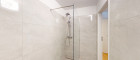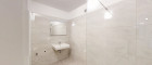 Modernes Badezimmer mit bodenebener Dusche und stilvoller Verfliesung