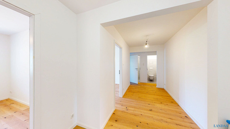 Die Wohnung wurde aufwendig und geschmackvoll saniert. Der hochwertige Parkettboden in den Wohnräumen sorgt für eine warme Atmosphäre, während moderne Fliesen in Nassräumen und Küche für Stil und Langlebigkeit stehen.