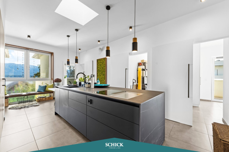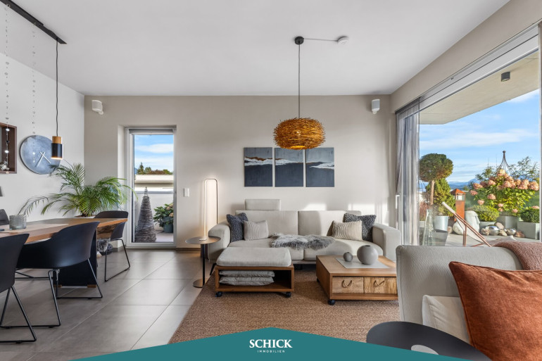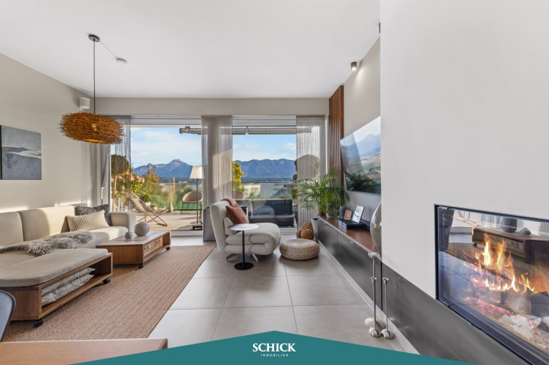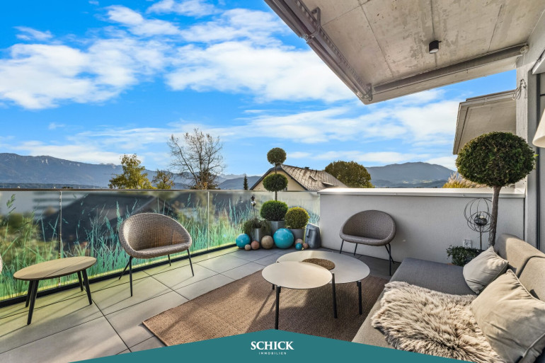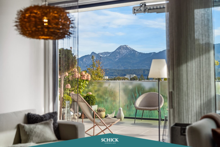 Genießen Sie die durchdachte Gestaltung und liebevolle Details wie extra auf die 2,80 m Raumhöhe verbauten Einbaukästen vom Tischlermeister. Das in Tageslicht gebadete Wohnzimmer bietet ausreichend Platz für einen großen Esstisch. Der Kamin sorgt dabei für ein Mehr an Behaglichkeit. Die großflächige Glas-Schiebetüre macht den Couch-Bereich umso einladender. Auf der XL-Terrasse genießen Sie den Blick auf den Mittagskogel. Ein Ort, der zum Verweilen einlädt und Ihre Lebensqualität steigert! Die uneinsichtige Sitzecke auf der Terrasse wird rasch zu Ihrem Lieblingsplatz.