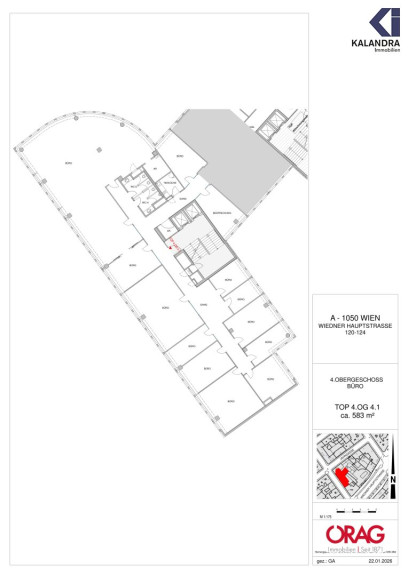 NEUBAU-BÜROFLÄCHEDiese im zweiten Liftgeschoß eines modernen Neubaus gelegene Bürofläche gliedert sich wie folgt: