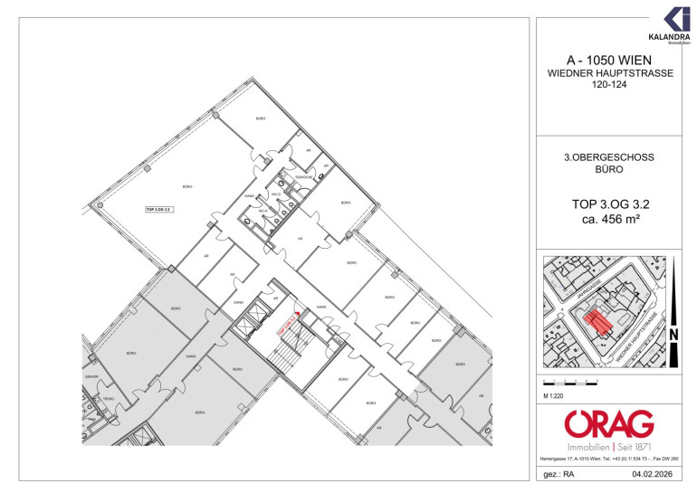NEUBAU-BÜROFLÄCHEDiese im 5. Liftgeschoß eines modernen Neubaus gelegene Bürofläche gliedert sich wie folgt: