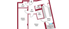 Die Flächen der 2-Zimmer-Wohnung gliedern sich in:
