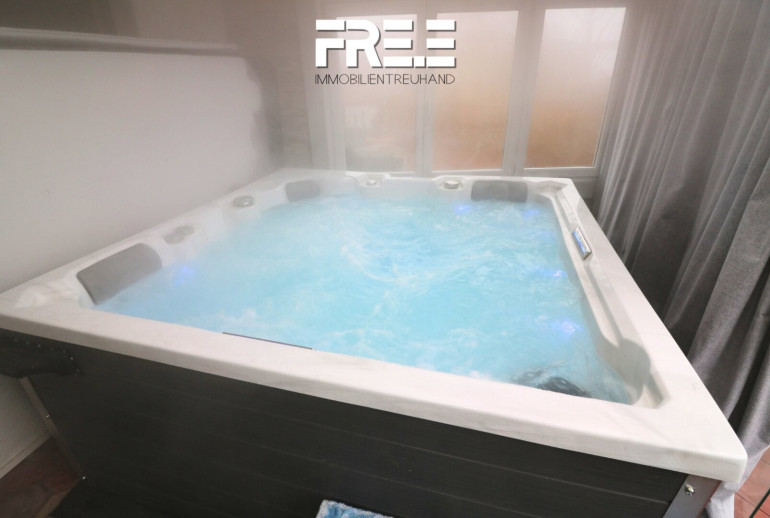 Innen setzt sich dieses Gefühl kompromisslos fort. Die moderne Einbauküche wird zum Treffpunkt, zum Ort des Lachens, Kochens und Zusammenseins. Der zentral platzierte Kamin schafft diese einzigartige Wärme. Ein Schlafzimmer mit Bad en suite schenkt Rückzug und Luxus, ein weiteres Badezimmer sowie ein Whirlpool verwandeln Alltag in Auszeit. Die Fußbodenheizung sorgt für ein ganzjährig perfektes Raumklima.