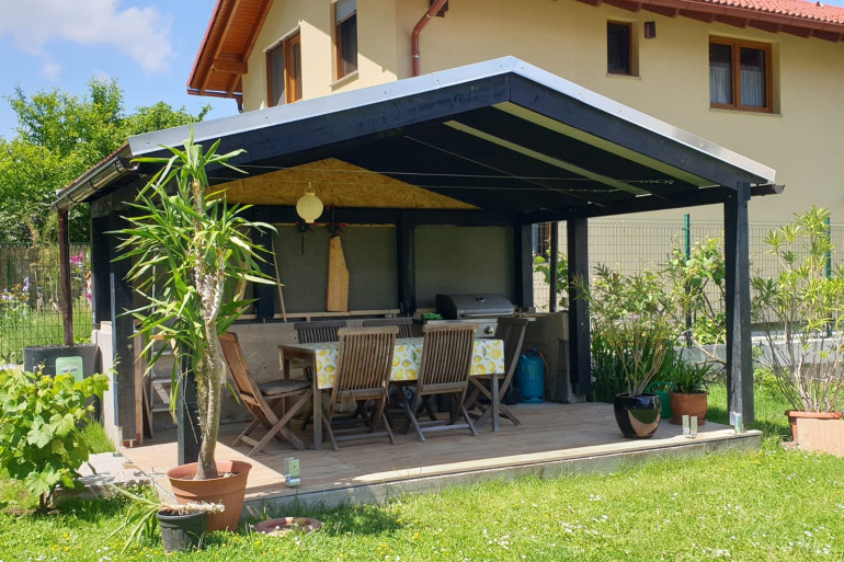 Pergola an der Grundstücksgrenze für gemütliche Grillabende