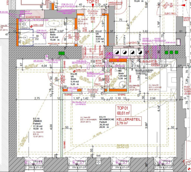 Fliesen, Parkett, Gas, Fußbodenheizung, Wohnküche / offene Küche, Personenaufzug, Dusche