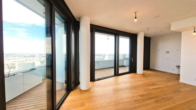 Zum Verkauf steht eine exklusive Wohnung mit ca. 56 m² Wohnfläche sowie einem Balkon mit ca. 30m² im 40. Stock. Der Ausblick ist atemberaubend! Hochwertige Materialien wie edles Parkett und großzügige Glasflächen schaffen ein modernes, lichtdurchflutetes Ambiente. Der beeindruckende Fernblick verleiht diesem Zuhause eine besondere Atmosphäre – ein Ort zum Ankommen und Wohlfühlen.
