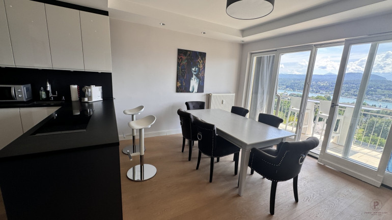 Der Balkon mit Panoramablick auf den Wörthersee ist das Highlight dieser Wohnung und verbindet einzigartig Natur, See und Wohnen.