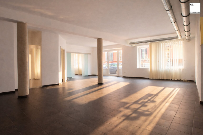 Das helle, freundliche Geschäftslokal im Erdgeschoß eines sorgfältig und umfangreich revitalisierten Hauses verfügt über 3 Büroräume - samt Küche, Archiv/Abstellraum, 2 separate WC - mit in Summe großzügigen 143,12 m² Nutzfläche, Vollausstattung der Küche sowieschönem Ausblick!