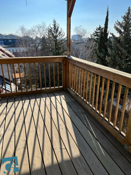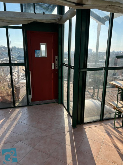 Das Obergeschoß ( = 2. Dachgeschoß) besteht aus einer offenen Galerie sowie 2 weiteren, kleineren Räumen (mit Dachschrägen). Von dort gelangt man über wenige Stufen auf die beeindruckende Dachterrasse mit einem rundum verglasten Wintergarten, welcher über eine eigene Liftstation verfügt und exklusiv den Bewohnern zur Verfügung steht. Die außergewöhnliche Größe der Terrasse und der Blick auf die Stadt sowie die angrenzenden Bezirke sind einzigartig. Absolute Privatsphäre ist garantiert, da die Terrasse nicht einsehbar ist.