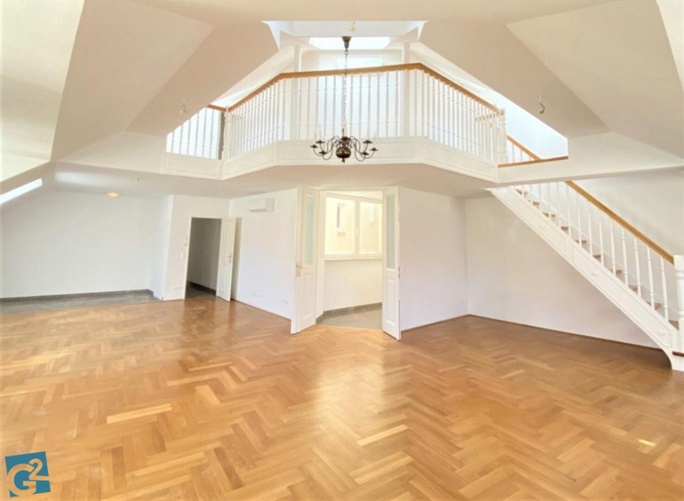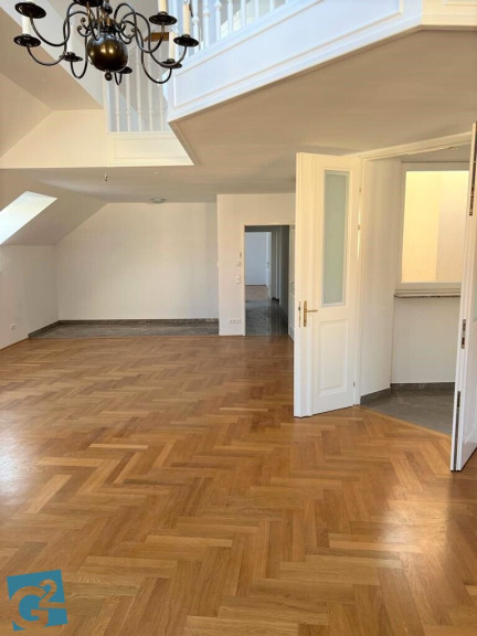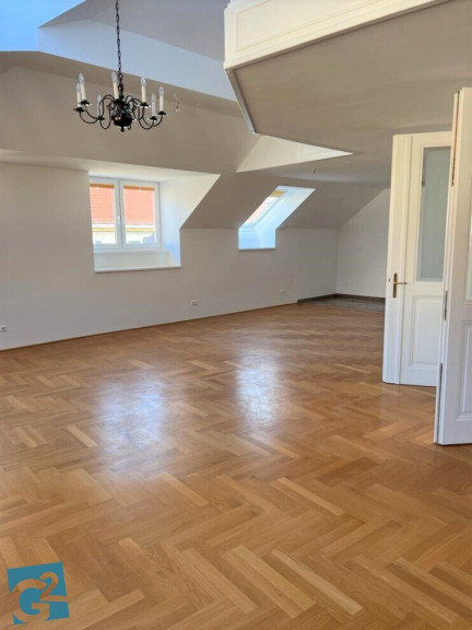Zum Verkauf gelangt eine repräsentative Dachgeschoßwohnung auf 2 Ebenen mit ca. 260m² Nutzfläche sowie ca. 100m² Freifläche (12m² südseitiger Balkon und 87m² Dachterrasse) in einem sehr gepflegten, charmanten Altbau an der Ecke Alseggerstraße / Ferrogasse.