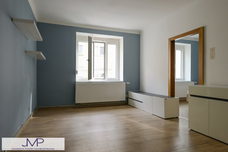 Die helle und sonnige Wohnung ist in südliche Richtung, zur Kreuzgasse hin orientiert. Sie ist ca. 52,35m² groß und liegt im 2. OG des Hauses. Auch ist ein Lift vorhanden!