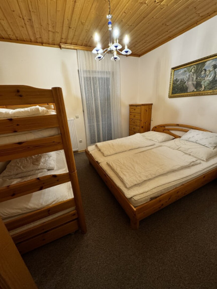 - 1 Schlafzimmer (derzeit mit Doppelbett und Stockbett ausgestattet)