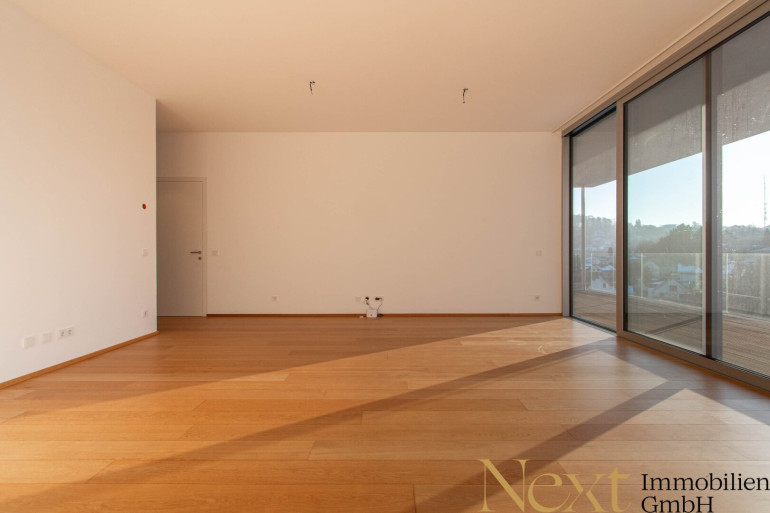 Die diversen Räumlichkeiten dieser Wohnung werden nahezu malerisch in Szene gesetzt - bodentiefe Glasfronten sorgen für eine entspannte und angenehme Wohnatmosphäre. In den Nassbereichen kommen zeitlose Feinsteinzeug-Fliesen zum Einsatz, während in den Wohn- und Schlafräumen ein edler Eichen-Echtholzparkettboden verlegt ist. Die dreifach verglasten Schallschutzfenster werden darüber hinaus mit elektrisch gesteuerten Raffstores versehen.