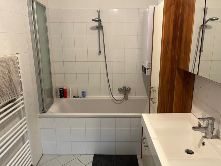 Fliesen, Parkett, Gas, Etagenheizung, Wohnküche / offene Küche, Badewanne