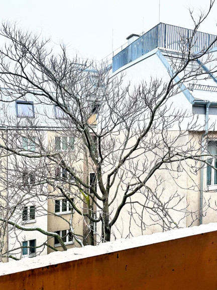 Die separate, hochwertige Tischlerküche ist voll ausgestattet und fügt sich funktional und elegant in das Wohnkonzept ein. Vom Wohnbereich gelangt man auf die Loggia mit Blick in den ruhigen, grünen Innenhof – ein idealer Rückzugsort zum Entspannen mitten in der Stadt.