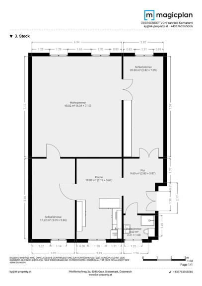 Die monatliche Miete beträgt € 1.368,90 inklusive Betriebskosten. Die sonstigen Kosten bestehen aus Heizkosten und Stromverbrauch.