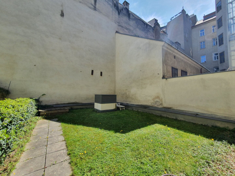Es gibt eine kleine Gemeinschaftsrasenfläche im Innenhof, welche mitbenützt werden darf.