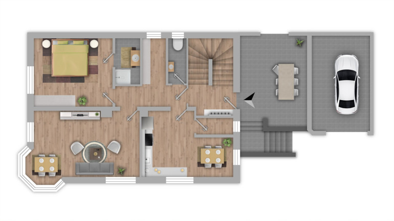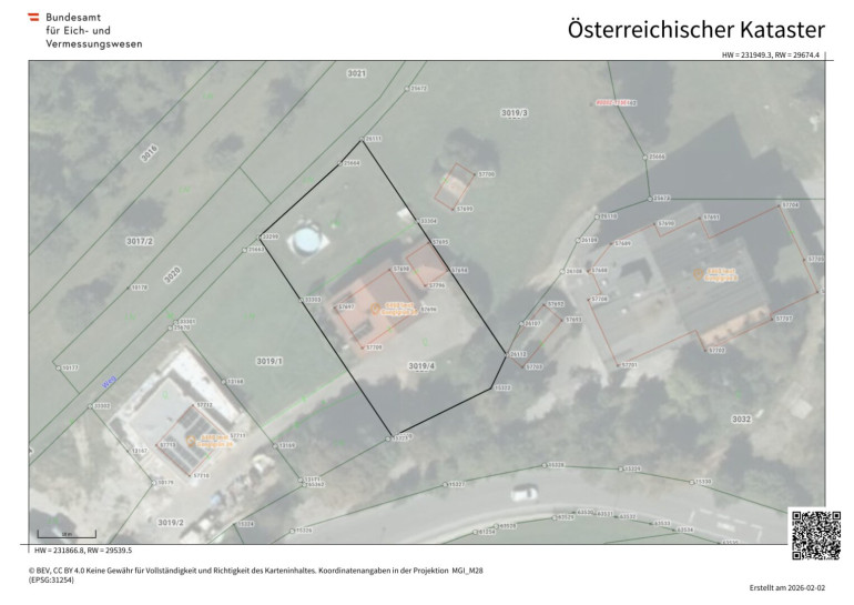 Dieses gepflegte Wohnhaus überzeugt durch seine ruhige, leicht erhöhte Lage und bietet ideale Voraussetzungen für Wohnen, Arbeiten und zukünftige Entwicklungsmöglichkeiten. Die Zufahrt erfolgt über einen rund 80 Meter langen Servitutsweg, der direkt zum großzügigen Vorplatz des Gebäudes führt. Dort stehen etwa fünf Kfz-Abstellplätze zur Verfügung, ergänzt durch eine Garage mit Platz für ein weiteres Fahrzeug.