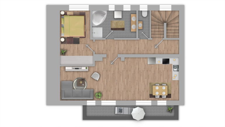 Im Erd- und Obergeschoss befinden sich jeweils eigenständige Wohneinheiten mit etwa 65 m² Wohnfläche. Offiziell ist das Gebäude bei der Gemeinde Imst derzeit als eine Wohneinheit eingetragen – bietet jedoch strukturell bereits die ideale Grundlage für Mehrgenerationenwohnen, Vermietung oder die Nutzung als großzügige Einheit für eine Familie.