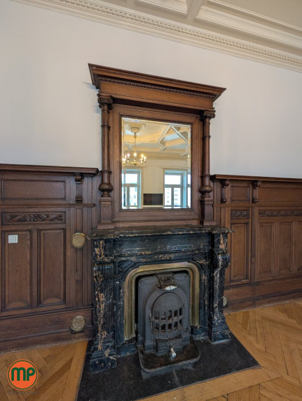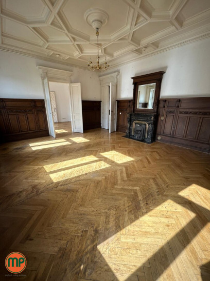 Das Herzstück der Wohnung – ein eleganter Salon – begeistert mit historischem Kamin, meisterhaft erhaltenen Stuckornamenten und edlem Tageslicht, das durch hohe Kastenfenster fällt. Wohnkultur auf höchstem Niveau. Direkt angrenzend liegt das sogenannte „Erkerzimmer“ – mit seiner charakteristischen Fensterform, prachtvollen Deckenhöhe und klassischer Würde eignet es sich ideal als Bibliothek, stilvoller Empfangsraum oder inspirierendes Home-Office.
