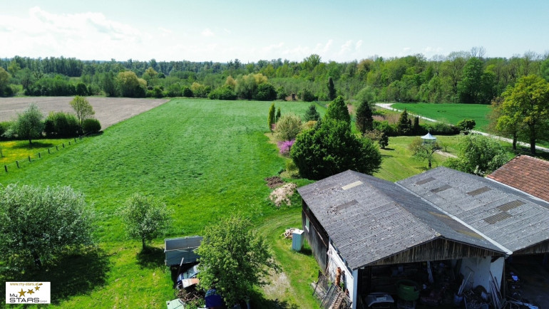 Wald- und Aulandschaften, Ackerflächen, malerische Streuobstwiesen. In dieser idyllischen Landschaft liegt eingebettet das erstmals in 1865 erwähnte landwirtschaftliche Anwesen. Die Hofstelle besteht aus dem neuwertigem Wohnhaus, dem alten Wohnhaus, sowie den früheren Stallungen und Wirtschaftsgebäuden.
