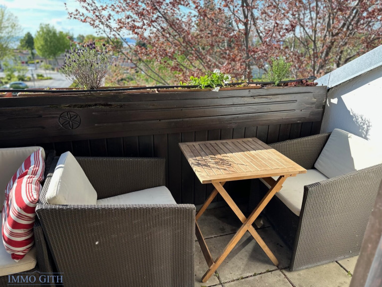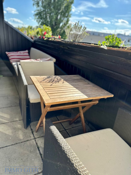 Der Balkon bietet ausreichend Platz für Sitzgelegenheiten und lädt zum Entspannen an sonnigen Tagen oder lauen Sommerabenden ein.