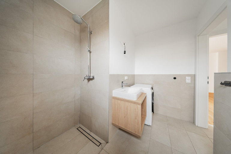Die Wohnung verfügt über insgesamt vier Zimmer, ein Bad mit Dusche und WC sowie ein Bad mit Badewanne und WC. Sie eignet sich ideal für Paare oder kleine Familien, die modernes Wohnen mit Außenflächen in ruhiger Umgebung schätzen.