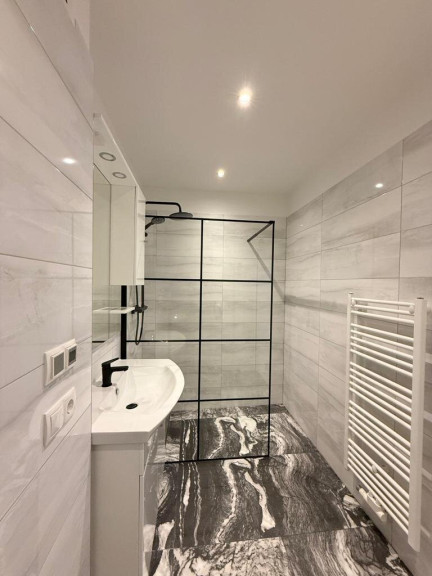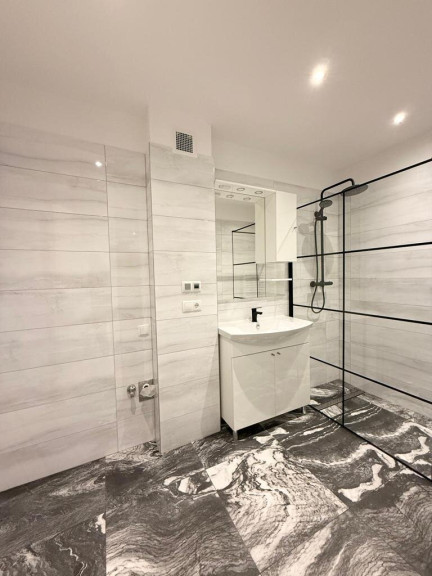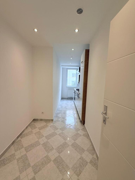 Vom zentralen, relativ großen Vorzimmer, erreicht man das Wohnzimmer, Schlafzimmer, eine voll eingerichtete Küche, das Badezimmer mit einer bodengleichen Dusche und Waschmaschinenanschluss sowie das WC mit einem Handwaschbecken.