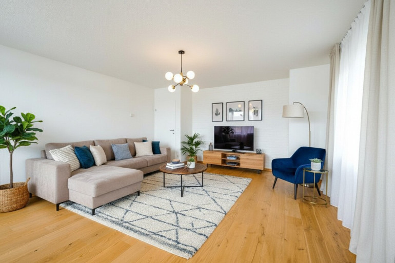 Moderne Ausstattungsdetails wie Fußbodenheizung und Rollläden in allen Zimmern bieten zusätzlichen Wohnkomfort und machen diese Wohnung zu einem rundum stimmigen Zuhause.
