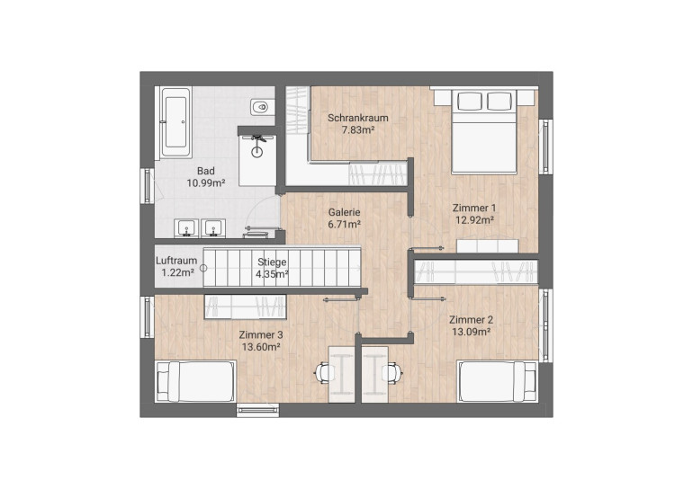 - Zimmer I inkl. Schrankraum: 20,75 m²