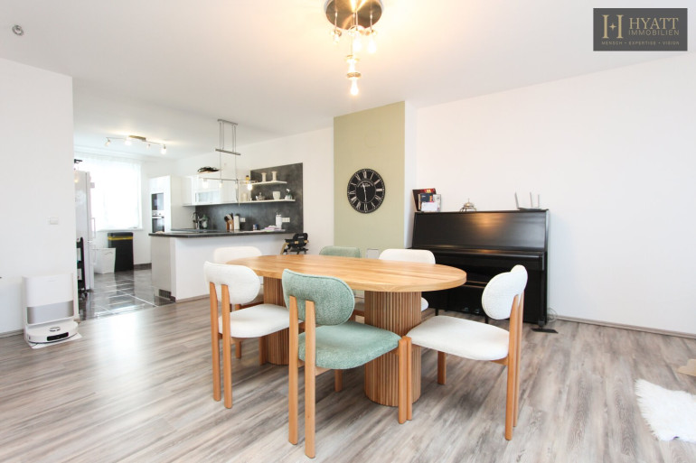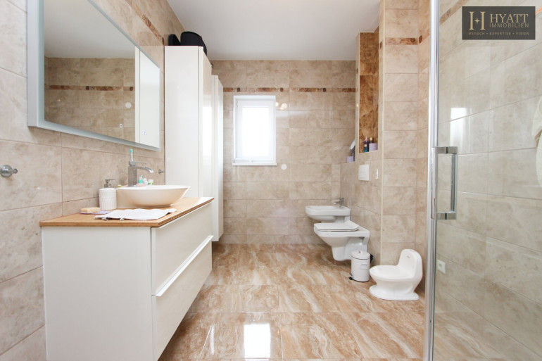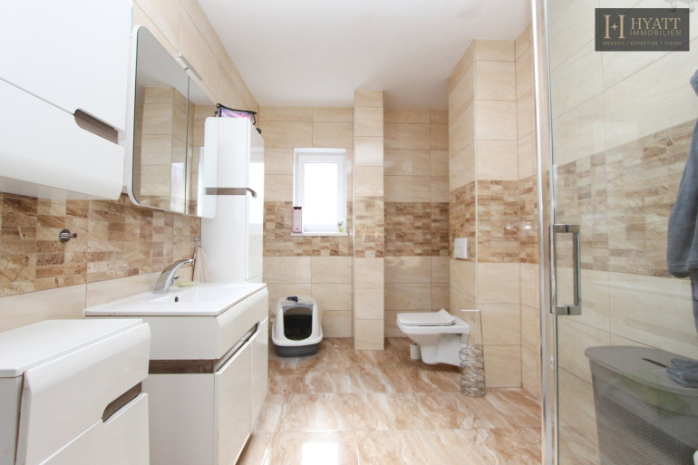 Im Inneren überzeugt das im Jahr 2016 errichtete Haus durch eine moderne, zeitlose Ausstattung und eine durchdachte Raumaufteilung. Die Wohnfläche von ca. 193 m², ergänzt durch eine Nutzfläche von über 304 m², schafft ein großzügiges Raumgefühl auf allen Ebenen. Große Fensterflächen sorgen – wie auf den Bildern ersichtlich – für helle, lichtdurchflutete Räume und eine angenehme Wohnatmosphäre.