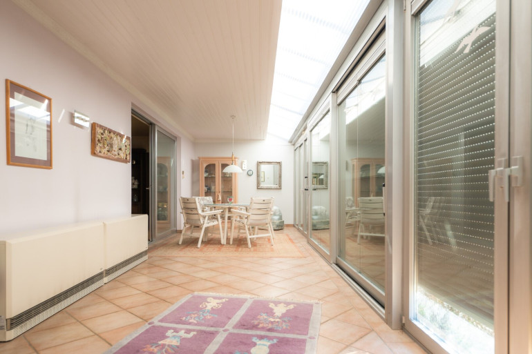 Im Wintergarten können Sie die Sonne genießen, während Sie den Blick über den großen Garten schweifen lassen. Er ist der ideale Ort, um auch in der kühleren Jahreszeit einen überdachten und hellen Bereich nützen zu können, wenn die Gartensaison noch nicht begonnen hat.