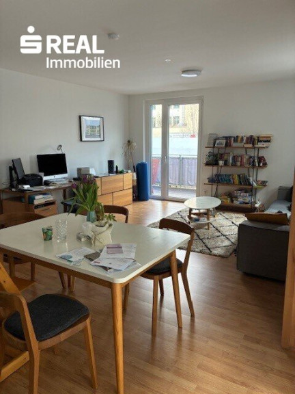 Sie suchen schon lange das perfekte Familiendomizil? Sie wollen im Grünen wohnen, aber verkehrstechnisch trotzdem gut angebunden sein? Dann ist dieses Objekt genau das Richtige für Sie. Es befindet sich im 1. Stock eines soeben 2021 erbauten Wohnhauses. Über den zentralen Vorraum sind alle Zimmer getrennt begehbar. Herzstück ist der 33 m² große Wohn-/Essbereich, bei dem Sie in Ihrer Gestaltung noch völlig frei sind. Der Raum ist besonders hell, da er nicht nur über einen direkten Ausgang auf den südostseitigen Balkon hat, sondern überdies noch über große französische Fenster verfügt. Auch die beiden geräumigen Schlafzimmer haben direkten Zugang zu dem Balkon. Bad und WC sind getrennt. Im Haus selbst befindet sich ein Kleinkindspielplatz, ein Jugendraum und selbstverständlich auch ein Fahrradkeller. Der Wohnung selbst ist außerdem ein eigenes Kellerabteil zugeordnet. Ein Garagenplatz ist um EUR 100.- anzumieten.